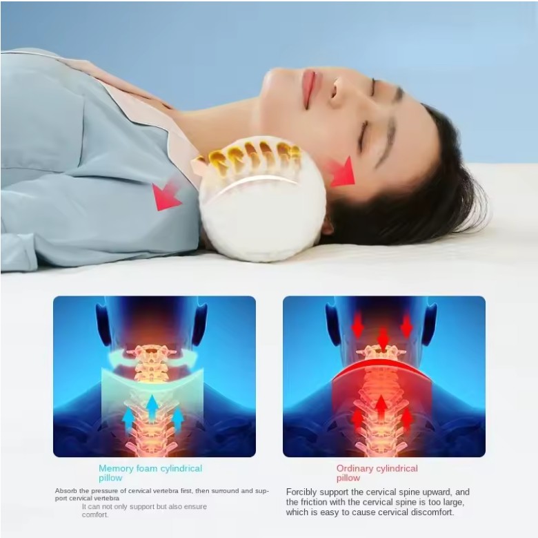 Premium Cylindrical Memory Foam Pillow – Ergonomic Comfort for All-Day Support